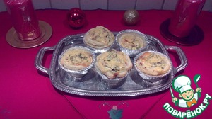 3. Вырезать из теста кружочки и уложить в формы для тарталеток. Заполнить начинкой и поставить выпекаться около 30-40 минут при 180 градусах.
