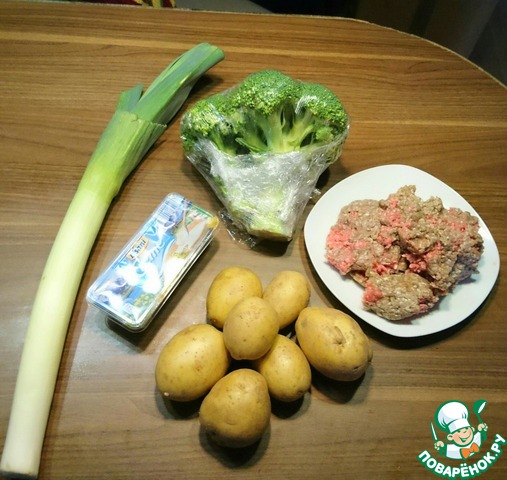 Ингредиенты для «Сырный суп с фаршем и пореем»: