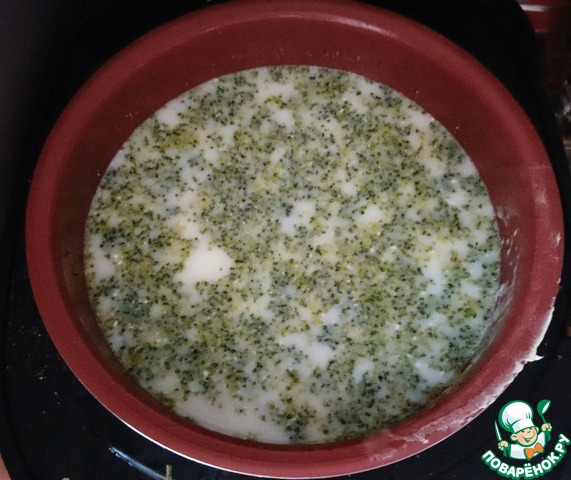 Через 10 минут добавляем фарш с луком, порезанный брокколи и плавленный сыр в кастрюлю с картошкой. Хорошо перемешать, подсолить, поперчить.