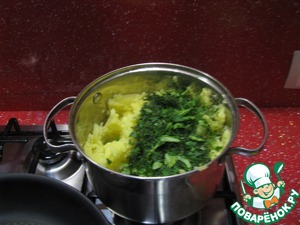 Нарезаем мелко (без стеблей) зелень и добавляем к картофельному пюре.