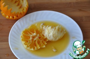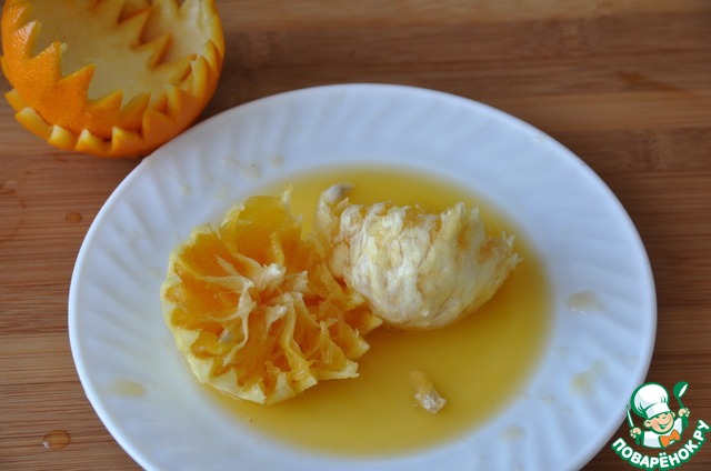 Над тарелкой (собираем весь сок), аккуратно снимаем кожуру.