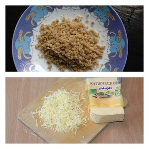 Очищенные грецкие орехи пропустить через мясорубку или измельчить блендером. Сыр натереть на средней терке. Собрать салат слоями: