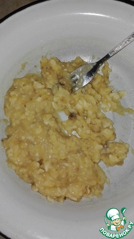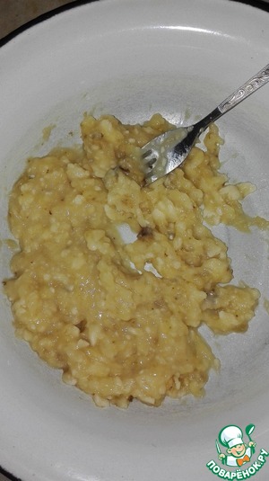 Добавить просеянную муку и соду. Муки может уйти больше, в зависимости от размера и спелости бананов.