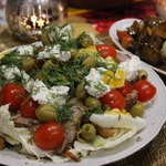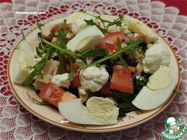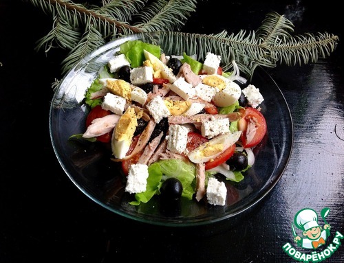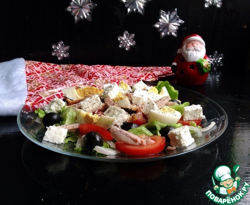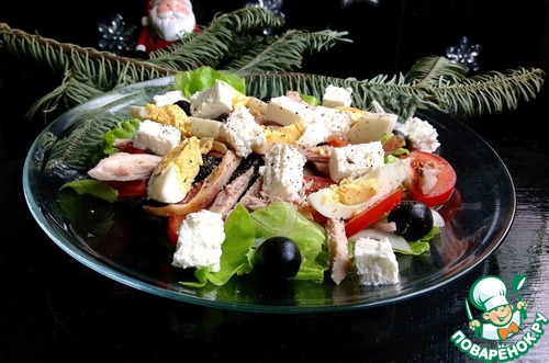 Очень интересный, легкий и красивый салат. В меру пикантный, с приятным вкусом и небольшим количеством ингредиентов. Его легко приготовить, а на праздничном столе он будет явным фаворитом. С новогодними пожеланиями салат отправляется к Ирине (iren 0511). Угощайтесь!