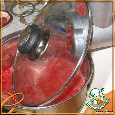 Пропустить через мясорубку. Крышка - чтобы мясорубка не "плевалась" соком.