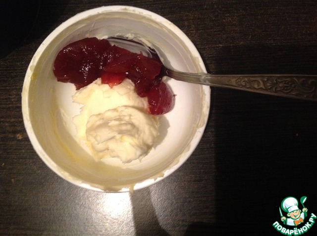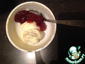 • Вторую часть смешала с клюквенным повидлом (1:1).