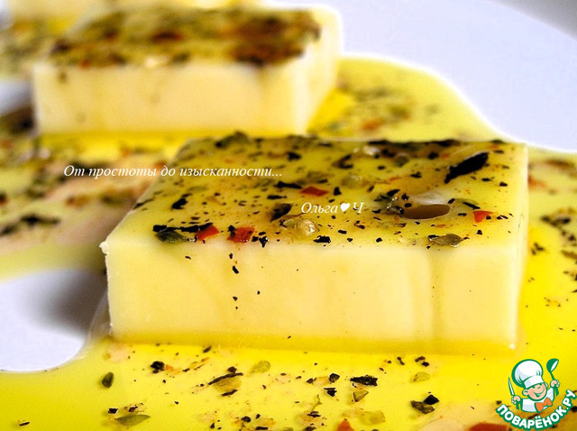 Выложить в маринад сыр, так чтобы маринад покрыл весь сыр.