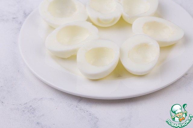 Ингредиенты для «Яйца с муссом из авокадо и семгой»: