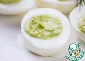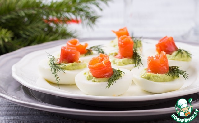 Рецепт «Яйца с муссом из авокадо и семгой»: