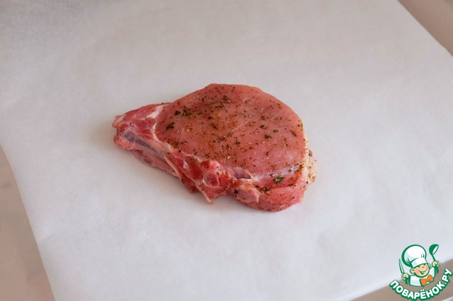 Стейки выложить на лист пергамента и фольги.
