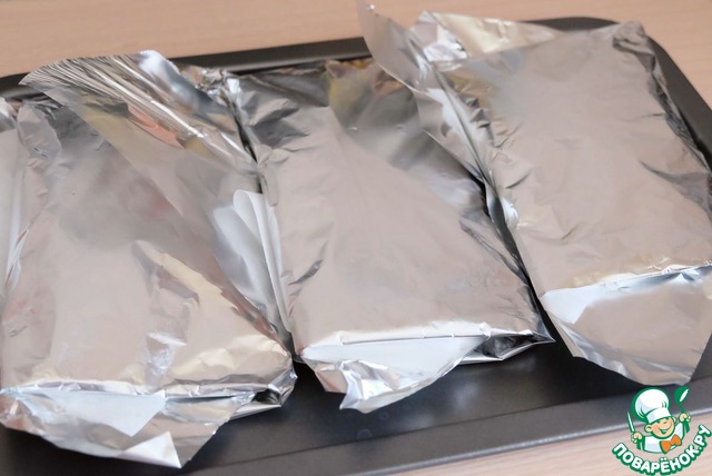 Пакеты выложить в форму и отправить в нагретый до 240 С духовой шкаф. Запекать до готовности.