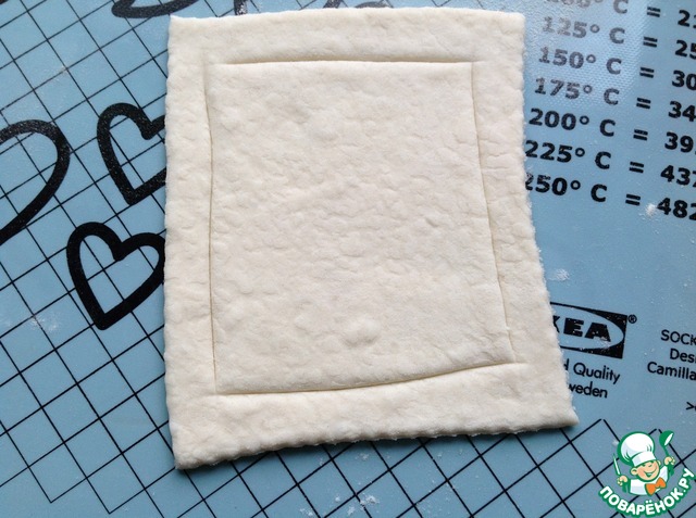 На каждом квадрате теста сделать надрезы ( не надрезать до конца теста) по периметру как на фото.