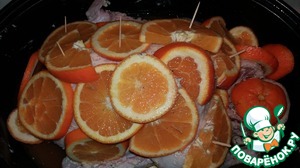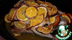 В процессе выпекания, апельсины не только дают аромат и вкус, но и защищают утку, не дают ей подгореть.