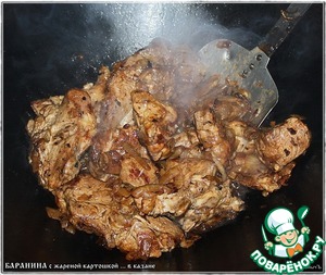 Баранина с жареным картофелем в казане