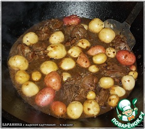Рецепт «Баранина с жареным картофелем в казане»:
