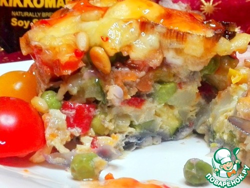 Очень вкусная, яркая овощная запеканка. Хорошая закуска в будние дни и праздничные. Её можно приготовить из любимых овощей. Запеканка хороша с бараньими рёбрышки.