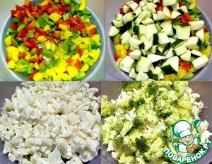 Нарезала перец, цуккини кубиками, насыпала свежезамороженный