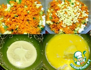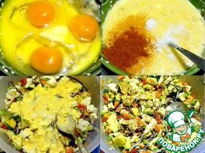 Заливку вылила в миску с овощами и хорошо перемешала.