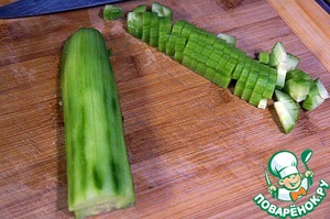 Свежий огурец лучше очистить от кожуры, порезать кубиком. -