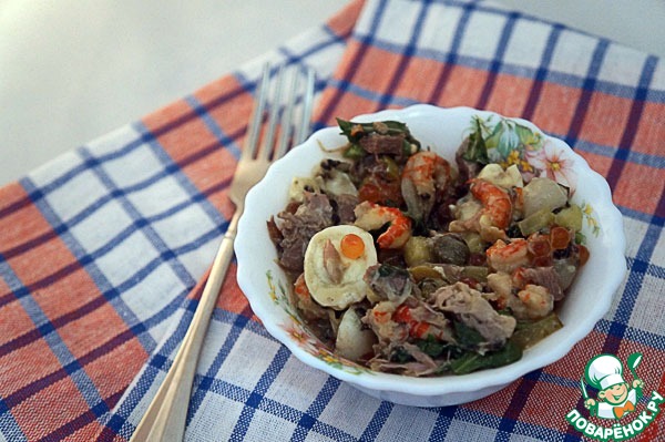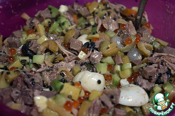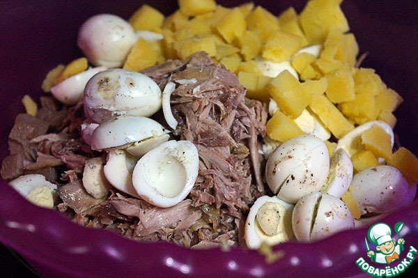 Рецепт «Салат "А-ля Оливье" с перепелами и языком»: