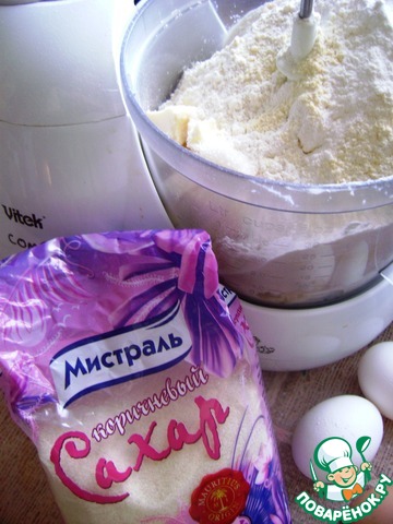 Охлажденное масло нарезаю кусочками, добавляю мелкий сахар – от ТМ «Мистраль» в выпечке, действительно, хорош.