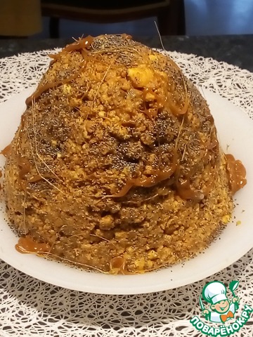 Последний штрих - сверху я украшаю макушку торта орехами и нитями карамели, изображая соломинки и хвою. -