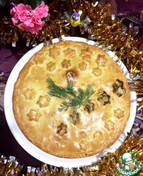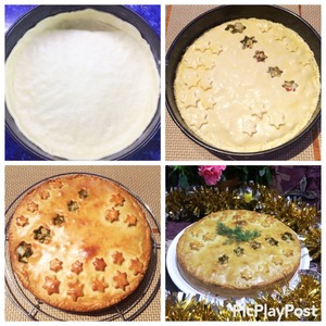 При помощи вилки скрепить пирог по краям, смазать пирог яйцом. Отправляем в разогретую духовку до 180°С и выпекаем минут 30 — 40 (следим за своей духовкой).