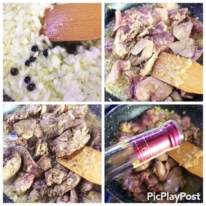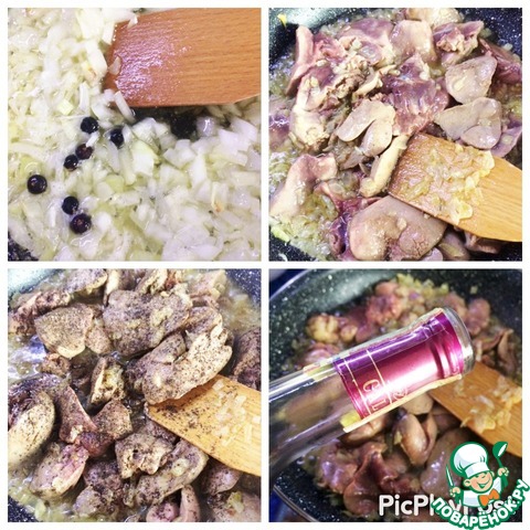Обжариваем на масле лук до золотистого цвета, добавив можжевеловых ягод. Когда лук готов, ягоды вынимаем и выбрасываем.