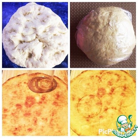 Тесто у меня уже было, поэтому я только отщипнула нужный мне кусочек теста, раскатала в пласт и отправила выпекаться в духовку.