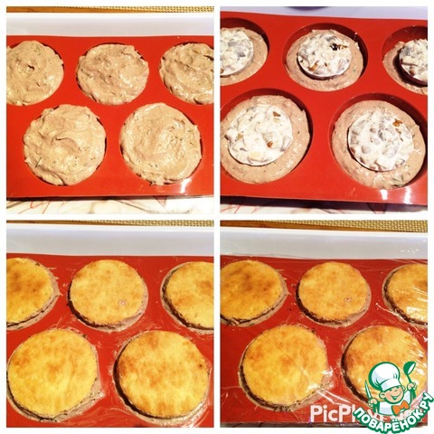 Раскладываем в силиконовую форму меньшего размера, это будет наша начинка внутри пирожного — сюрприз.