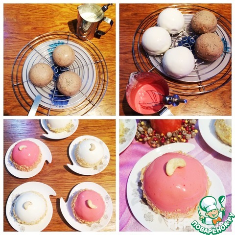 Обычные сладкие пирожные покрывают зеркальной глазурью.
