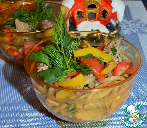 Рецепт «Печеночный пикантный салат с овощами»: