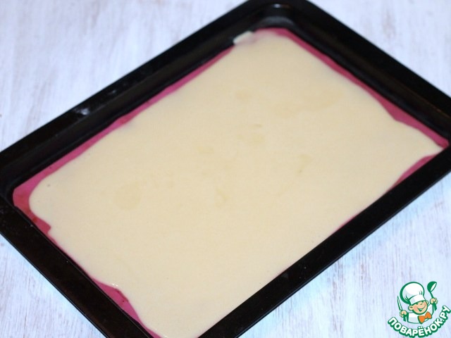 4. Стелем силиконовый коврик для выпечки на противень (33*23) или бумагу (смазываем маслом) и выкладываем яичную массу.
