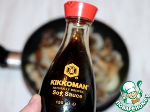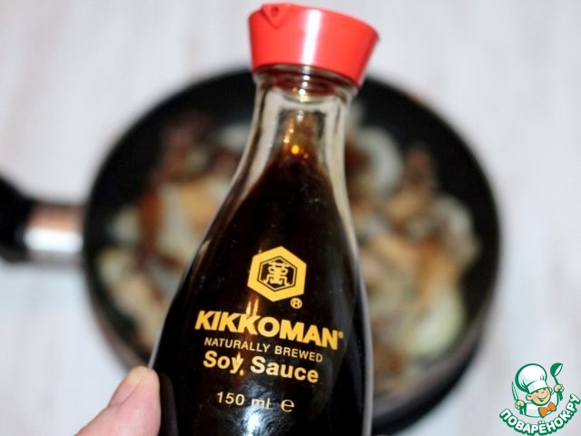 7. Затем добавляем к грибам соевый соус, молотый перец, соль и тушим до готовности.