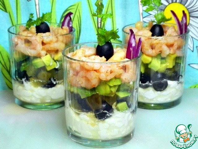 огурец, авокадо, оливки, креветки, лайм, соевый соус Киккоман сладкий. -