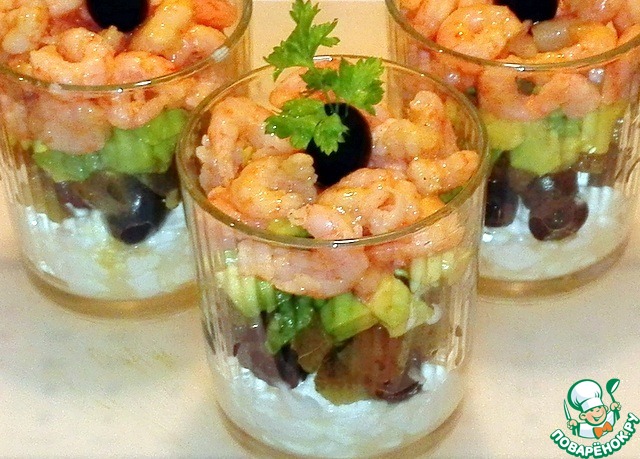 Ингредиенты для «Салат с зернёным творогом и креветками»: