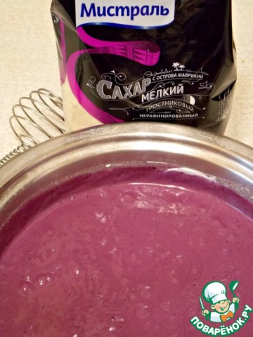 Чернику залить водой, добавить сахар "Мелкий" от ТМ "Мистраль" и проварить 5 мин.