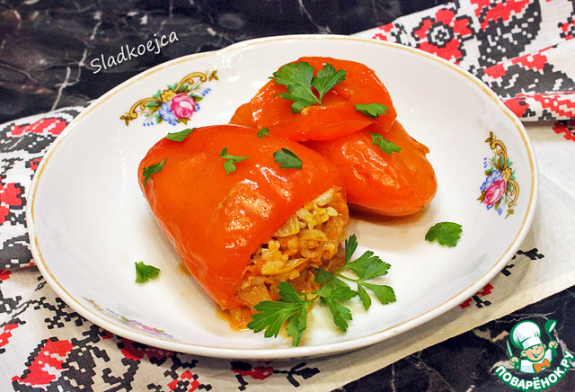 Рецепт «Болгарский перец, фаршированный рисом и овощами»: