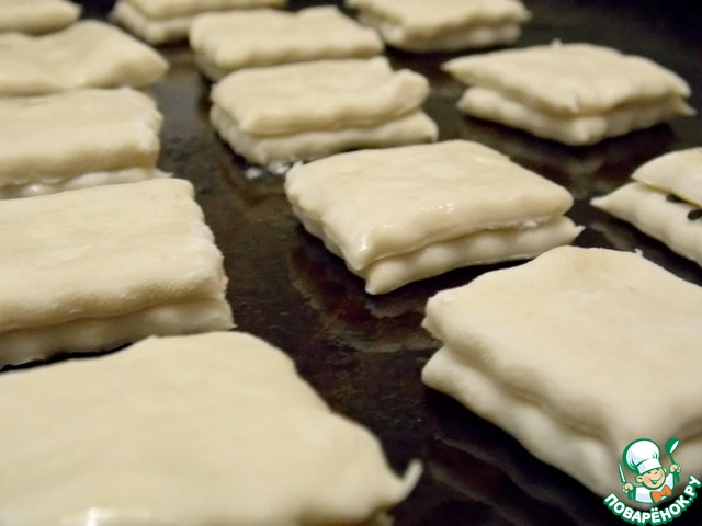 Положить вторые квадратики на квадратики с тмином, немного придавить.