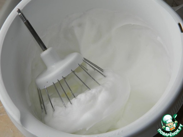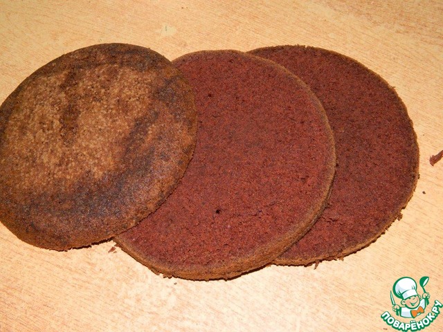 Готовый бисквит остужаем и разрезаем на 2-3 коржа.
