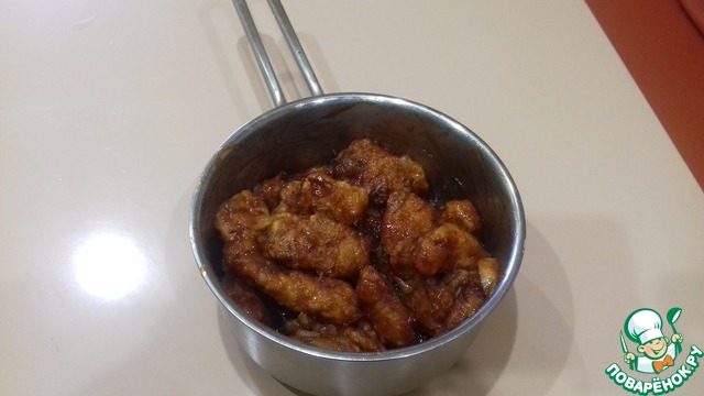 3-кляр не делала - сперва обжарила 5 минут на масле, потом залила соусом