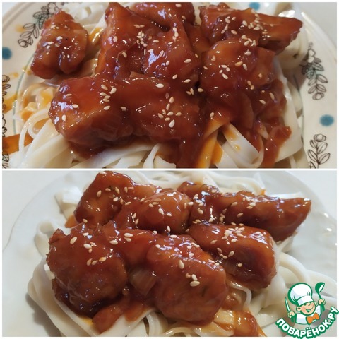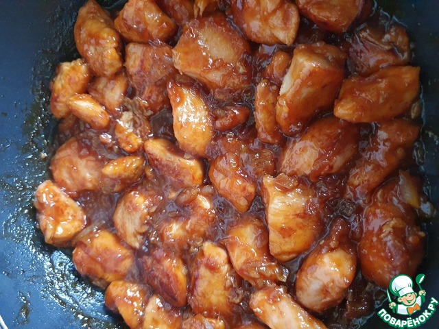 В соус добавила сок из консервированных ананасов, в саму курицу соответственно ананасы кусочками! ОБЪЕДЕНИЕ!