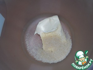 Мягкий маргарин растереть с сахаром.