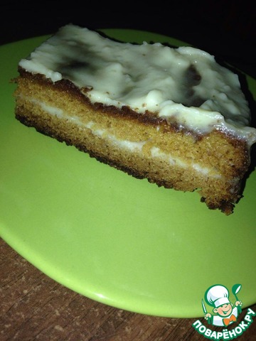 Моя мамуля его называла "Торт на День Рождение!"Кремом промазывала (масло-сгущёнка) сверху шоколад,нууу вкуснота !!!