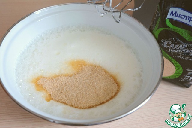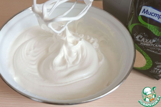 Добавить постепенно сахар тростниковый универсальный ТМ "Мистраль", продолжая взбивать до крепких пиков.
