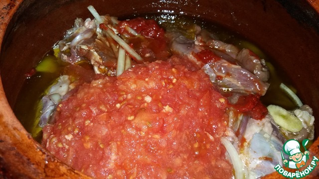 Утром добавить воду, томатную пасту и натертые на крупной терке помидоры.