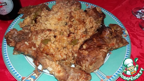 Когда мясо начнет отходить от костей, добавляем рисовую смесь и соль. Готовим до готовности риса. При необходимости добавляем воды.