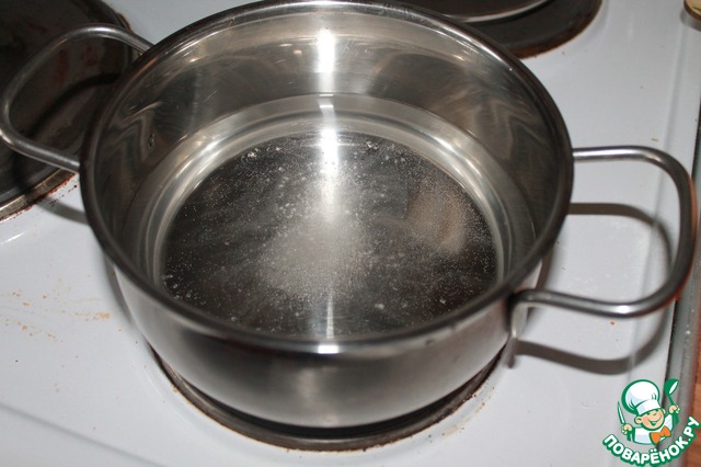 Приготовим заправку. Наливаем холодную воду в сотейник. Добавляем соль и сахар.
