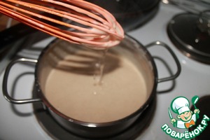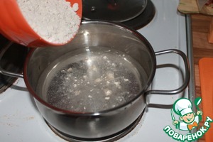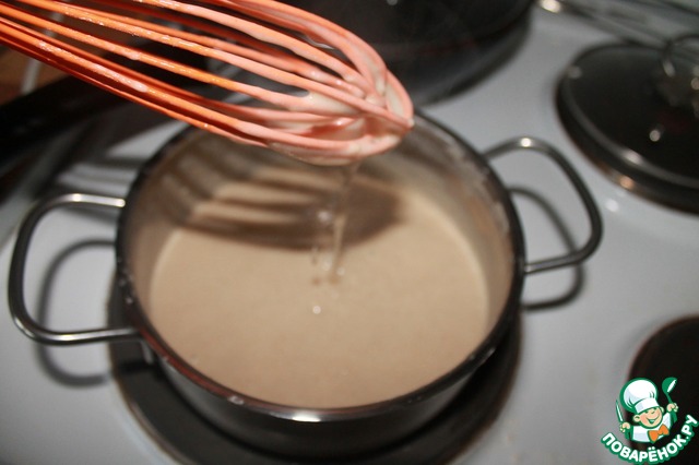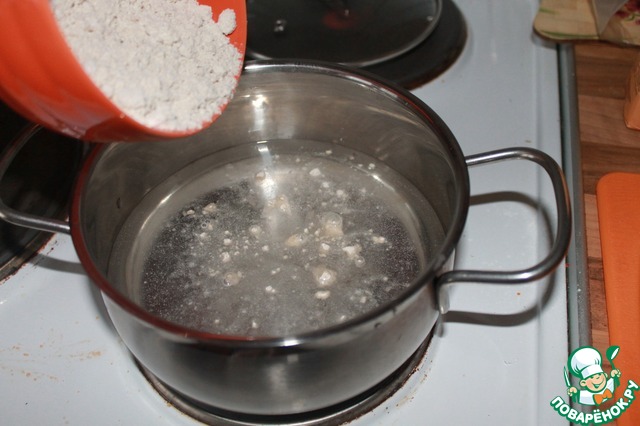 Овсяную муку постепенно, маленькими порциями, всыпаем и хорошо перемешиваем венчиком, чтобы не было комочков. Завариваем до состояния киселя. Если чувствуете, что масса жидковата - добавьте еще немного муки.