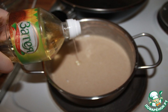 Снимаем с нагрева готовый кисель и остужаем. Добавляем растительное масло. Перемешиваем.